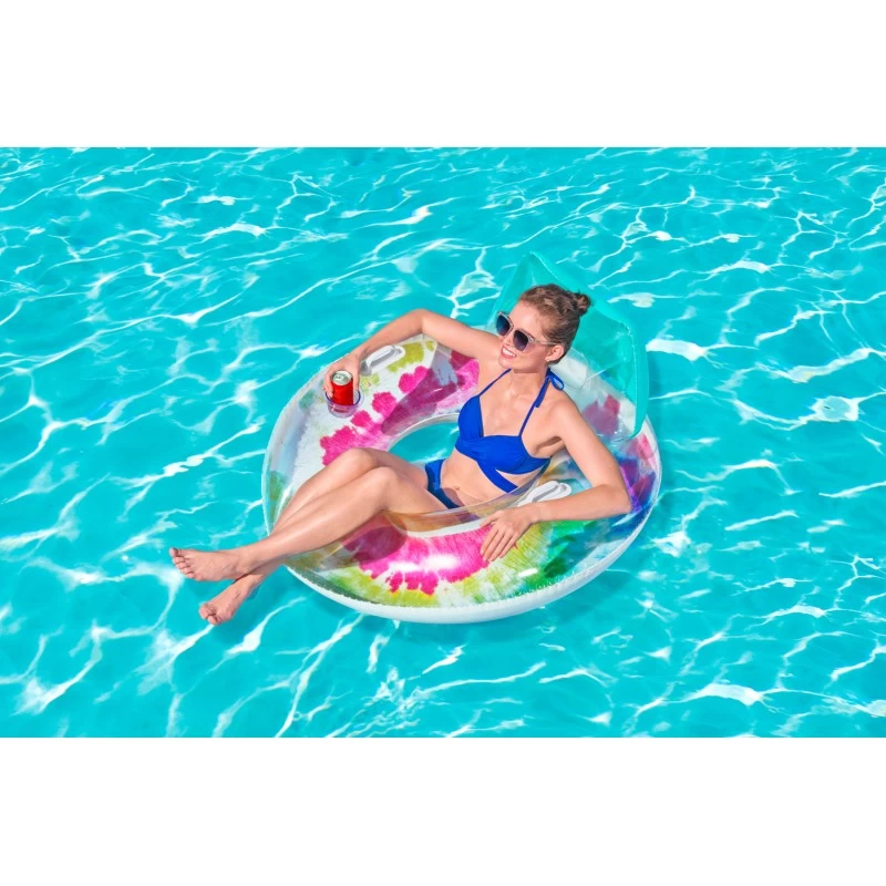 Embarquez pour un voyage de détente coloré avec la bouée Bestway® Tie Dye. Cette bouée a été créée pour établir de nouvelles normes non seulement dans l’eau, mais aussi en termes de style et de confort. D’une taille de Ø 104 x 57 cm, cette bouée offre suffisamment d’espace pour des moments de détente sur l’eau. La capacité de charge maximale et les chambres à air robustes en PVC résistant garantissent non seulement une longue durée de vie, mais aussi une expérience de bain sûre et confortable. Le point fort de cette bouée est sans aucun doute le design coloré tie-dye. Ce design n’est pas seulement un régal visuel, mais aussi une expression de liberté et d’individualité. Les caractéristiques de la bouée sont conçues pour vous offrir un maximum de confort. L’appui-tête confortable vous permet de vous adosser et de profiter du moment présent. Les poignées robustes assurent une prise sûre, tandis que les valves de sécurité assurent un gonflage et un dégonflage faciles. Pour garantir que votre plaisir de bain ne soit pas perturbé, nous incluons un patch de réparation pratique.