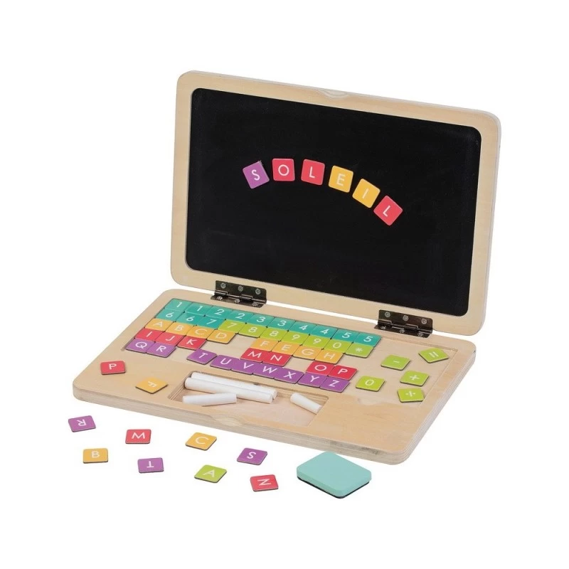 Ordinateur portable : apprends à lire, à écrire et à compter grâce à cet ordinateur portable en bois et ses touches aimantées. Contient 69 pièces. Dès 3 ans.