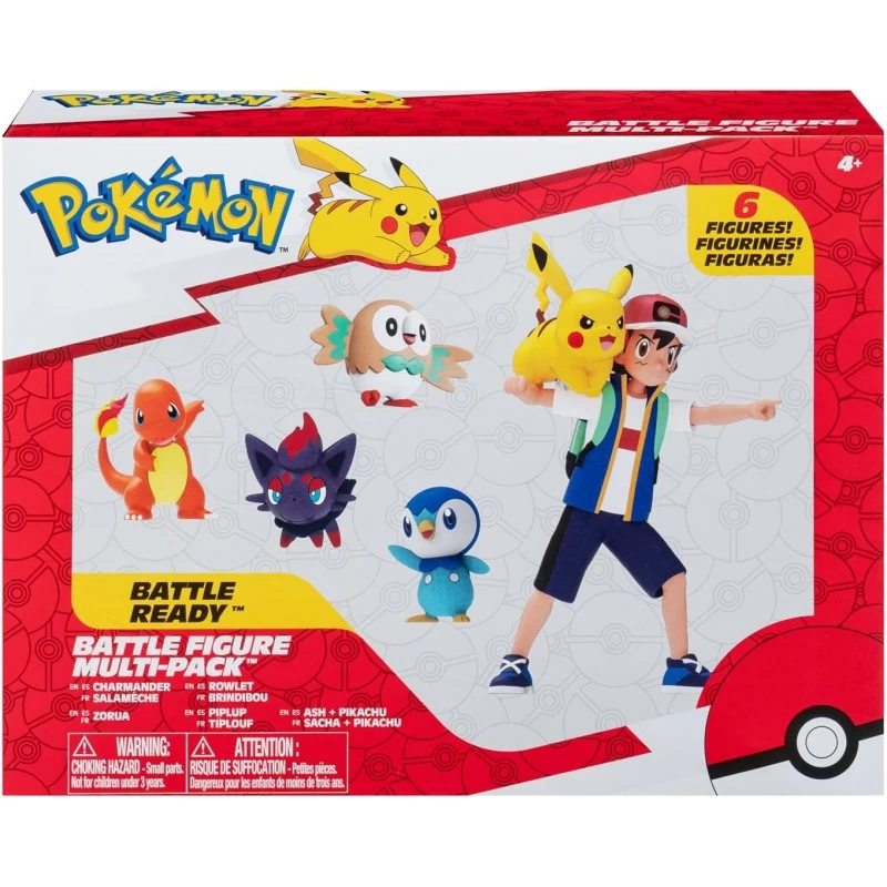 Pack de 6 figurines Pokemon avec , Sacha, Pikachu, Salamèche, Tiplouf, Brindibou, Zorua