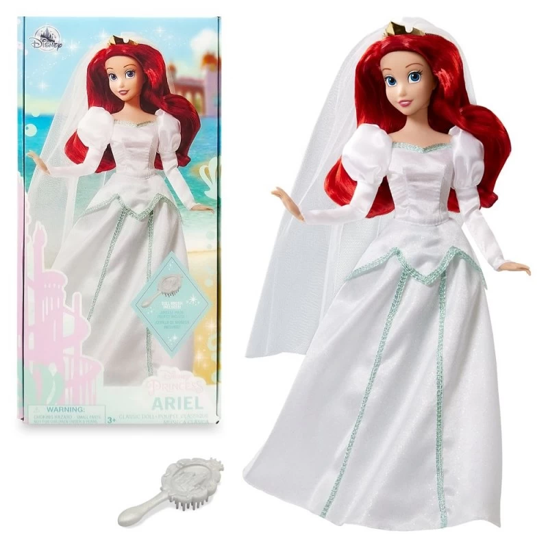Le grand jour est enfin arrivé ! Ariel est rayonnante de bonheur dans sa sublime robe de mariée. Pour l’occasion, elle s’accompagne même d’une brosse.
