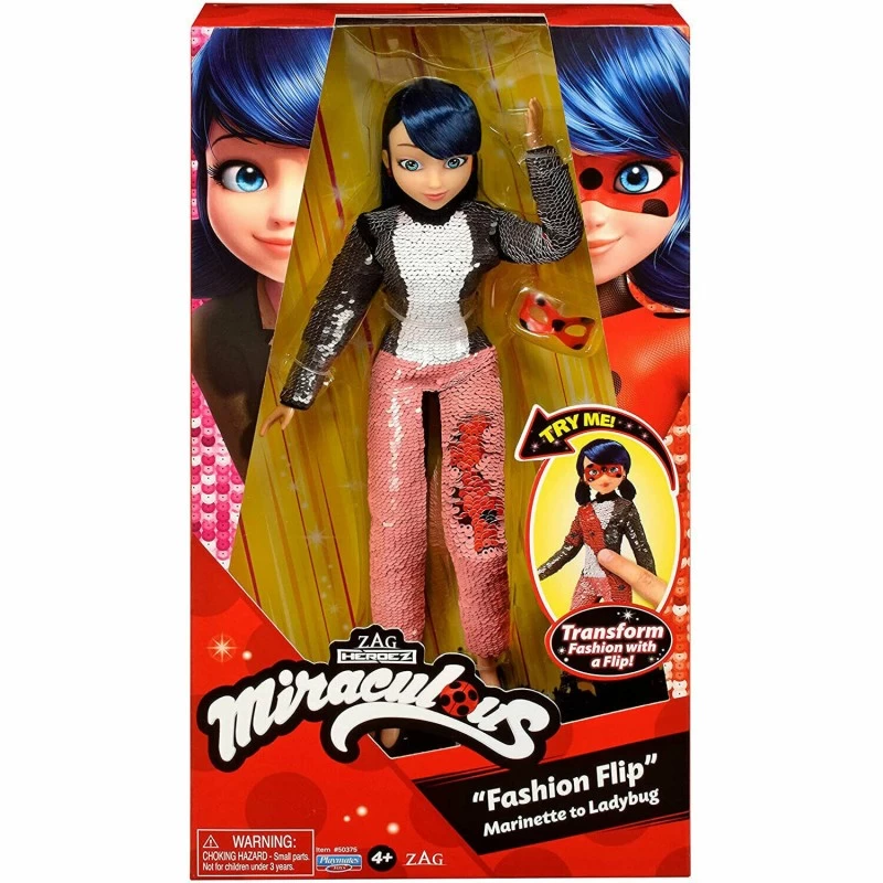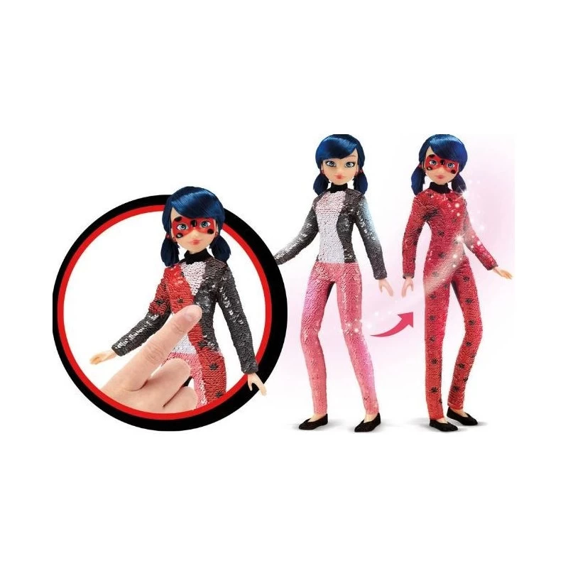 - Les poupées à sequin se transforment en un coup de doigt ! Transformez instantanément Marinette en Ladybug grâce à sa tenue à sequin reversible.