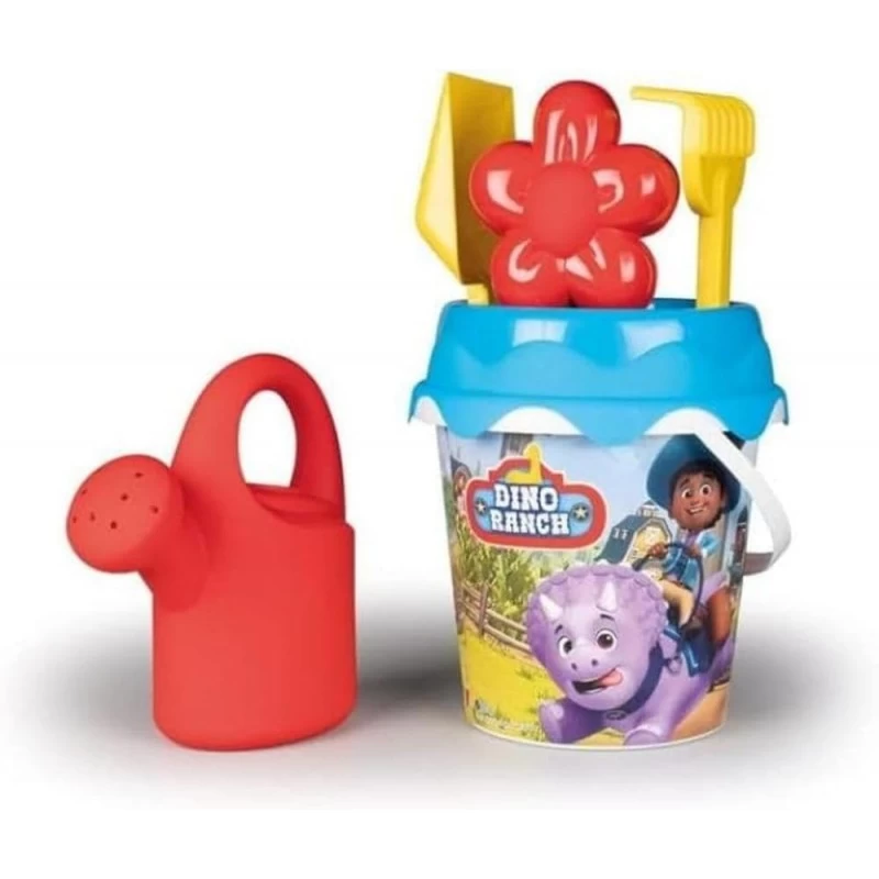 - Grâce au seau dino ranch garni d’un tamis, d’un râteau, d’une pelle, d’un arrosoir et d’un moule à sable, votre enfant aura de quoi s’occuper sur la plage ! Il pourra passer des journées entières à jouer et à construire des châteaux de sable ! Diamètre du seau : 17cm. A partir de 18 mois –